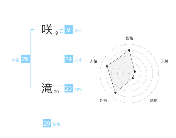 咲 滝さんの総格は29画の4点!