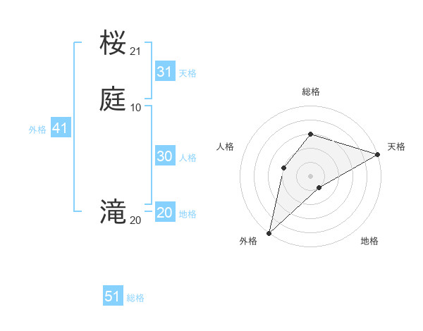 桜庭 滝さんの総格は51画の3点!
