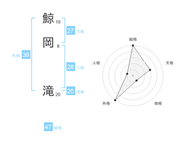 鯨岡 滝さんを姓名の画数から五運を鑑定