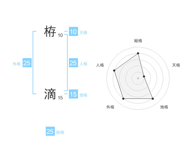 栫 滴さんの総格は25画の4点!