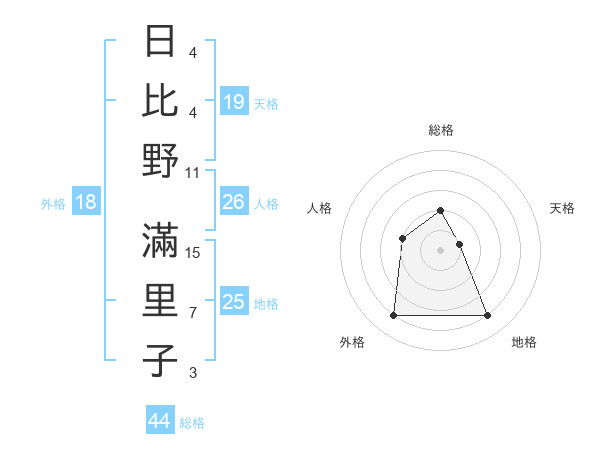 日比野 滿里子さんの総格は44画の2点!