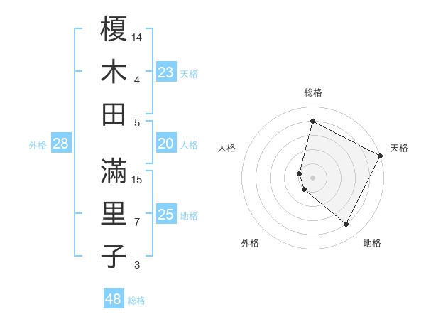 榎木田 滿里子さんの天格は23画の5点!