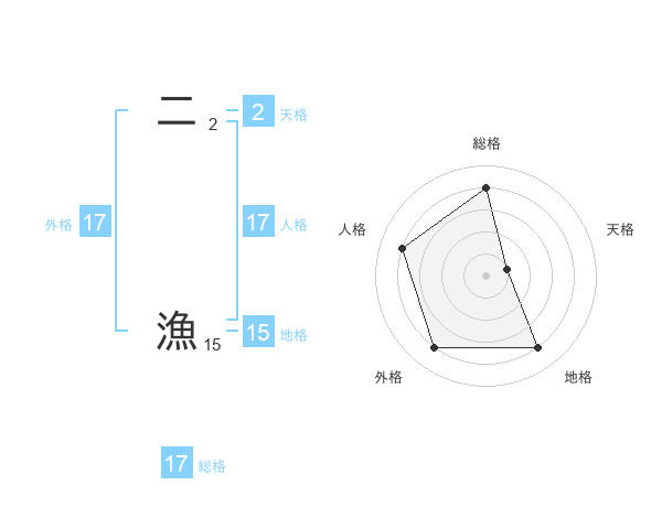 二 漁さんの総格は17画の4点!