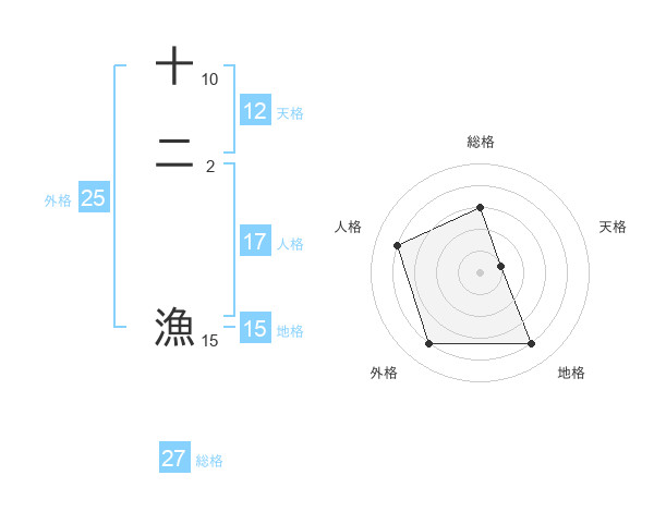 十二 漁さんの総格は27画の3点!