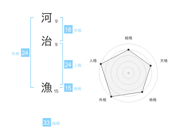 河治 漁さんの総格は33画の4点!
