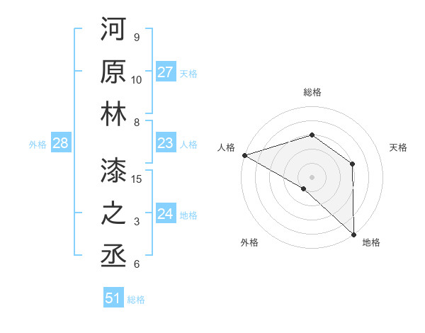 河原林 漆之丞さんの総格は51画の3点!