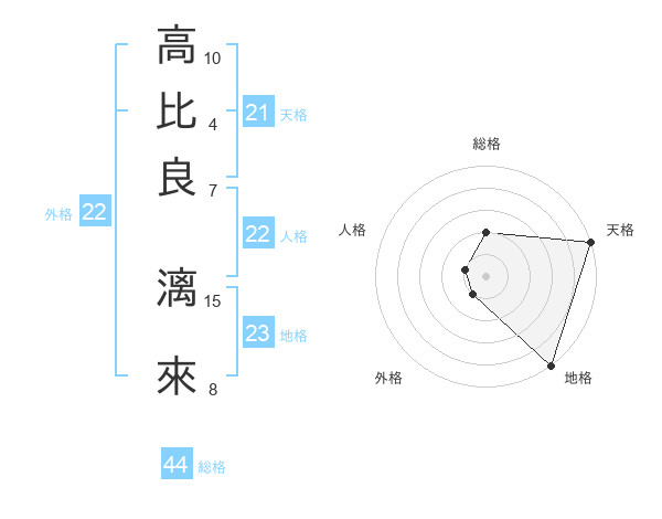 高比良 漓來さんを姓名の画数から五運を鑑定
