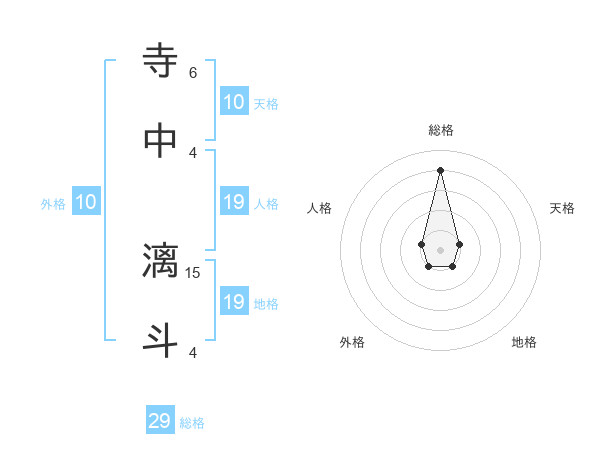 寺中 漓斗さんを姓名の画数から五運を鑑定