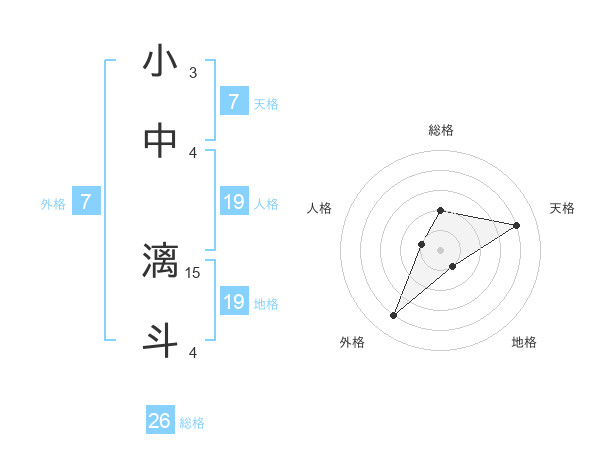 小中 漓斗さんの総格は26画の2点!