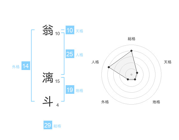 翁 漓斗さんを姓名の画数から五運を鑑定