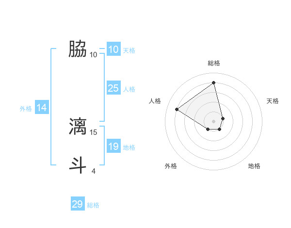 脇 漓斗さんの総格は29画の4点!