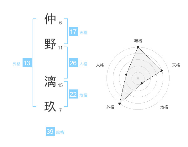 仲野 漓玖さんを姓名の画数から五運を鑑定