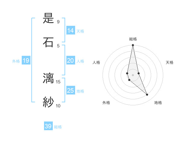 是石 漓紗さんの総格は39画の5点!