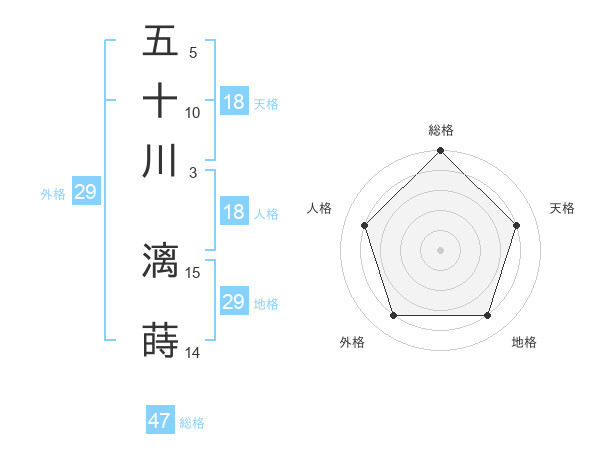 五十川 漓蒔さんを姓名の画数から五運を鑑定