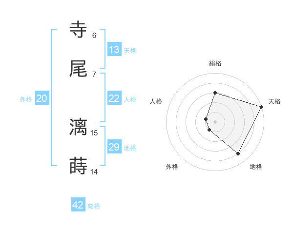 寺尾 漓蒔さんの天格は13画の5点!