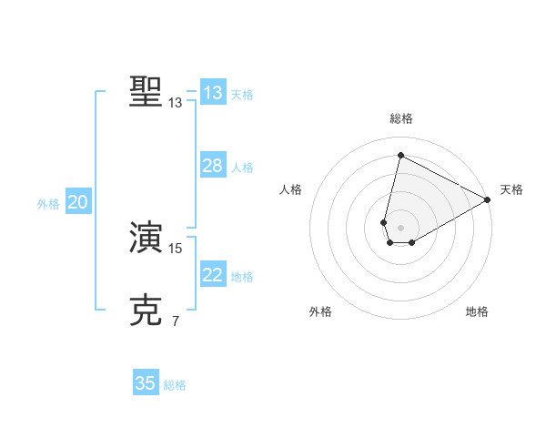 聖 演克さんの天格は13画の5点!