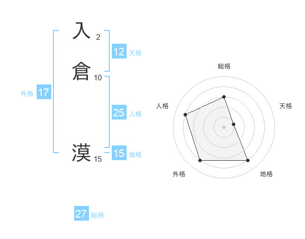 入倉 漠さんの総格は27画の3点!