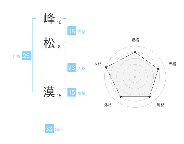 峰松 漠さんの総格は33画の4点!