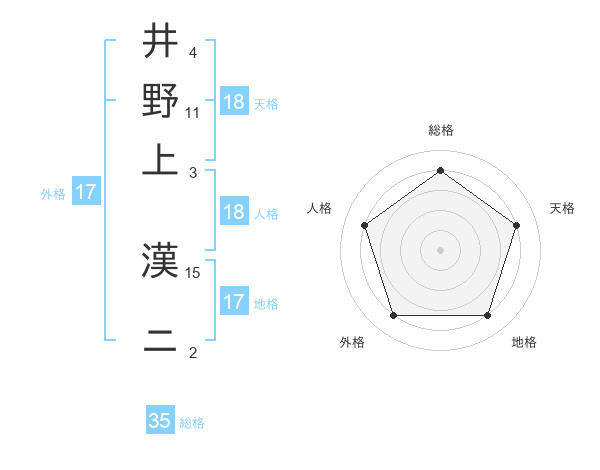 井野上 漢ニさんを姓名の画数から五運を鑑定