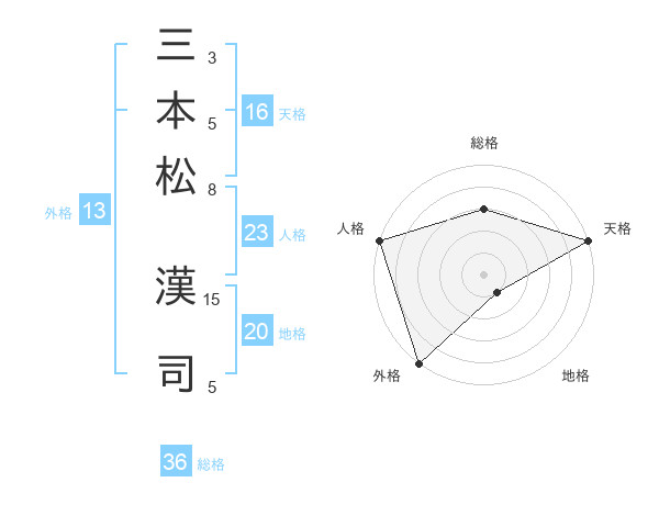 三本松 漢司さんを姓名の画数から五運を鑑定