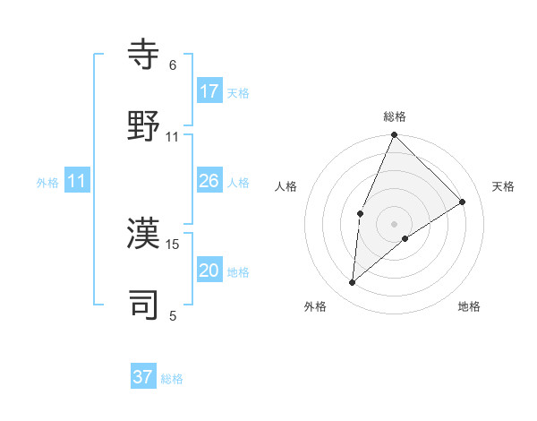 寺野 漢司さんの総格は37画の5点!