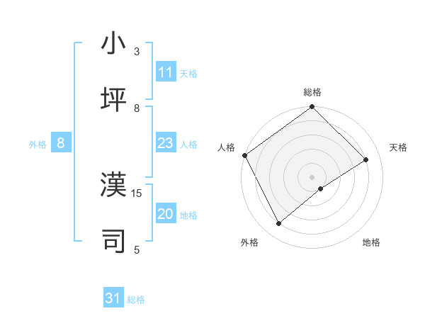 小坪 漢司さんを姓名の画数から五運を鑑定