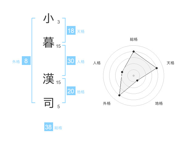小暮 漢司さんの総格は38画の4点!