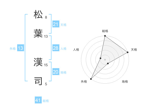 松葉 漢司さんを姓名の画数から五運を鑑定