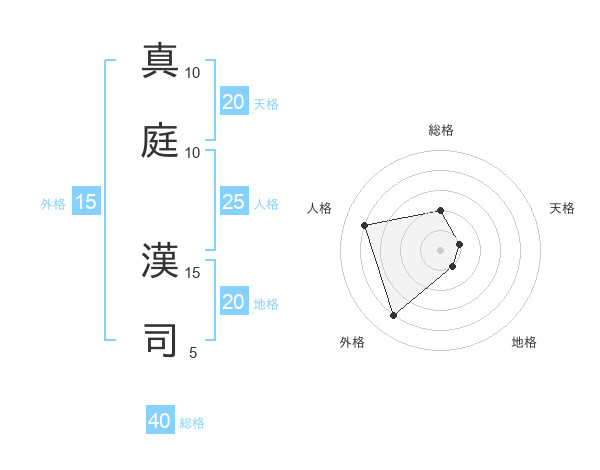 真庭 漢司さんの天格は20画の1点!