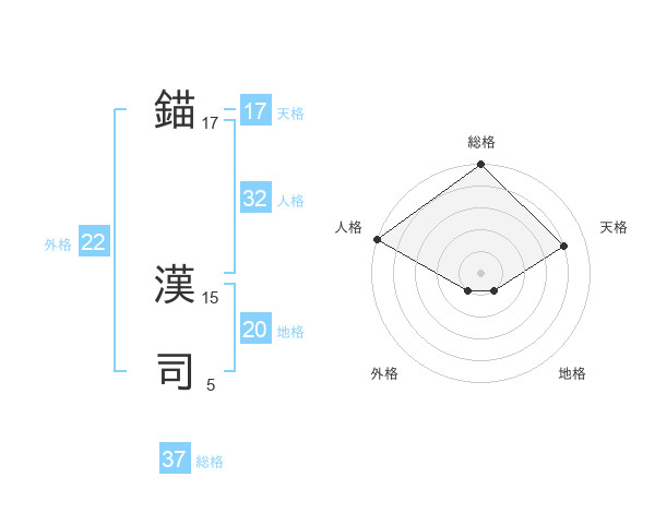 錨 漢司さんの総格は37画の5点!