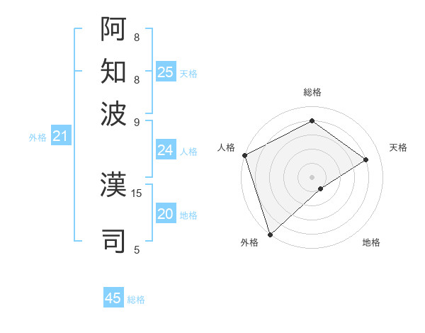 阿知波 漢司さんを姓名の画数から五運を鑑定