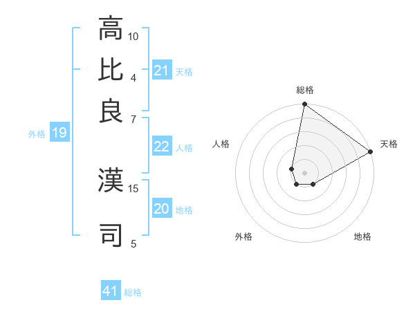 高比良 漢司さんを姓名の画数から五運を鑑定