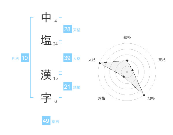 中塩 漢字さんの総格は49画の2点!