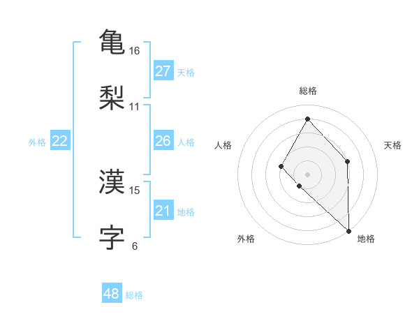 亀梨 漢字さんを姓名の画数から五運を鑑定