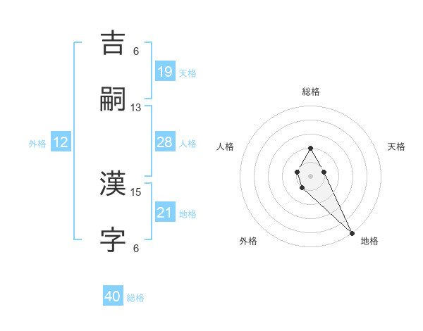 吉嗣 漢字さんの地格は21画の5点!