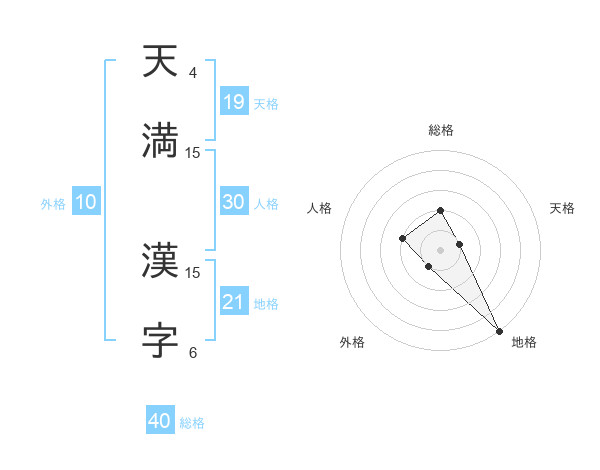 天満 漢字さんの総格は40画の2点!