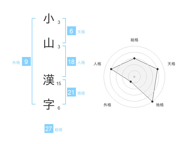 小山 漢字さんの総格は27画の3点!
