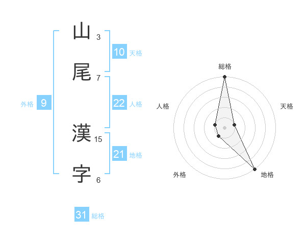 山尾 漢字さんの総格は31画の5点!