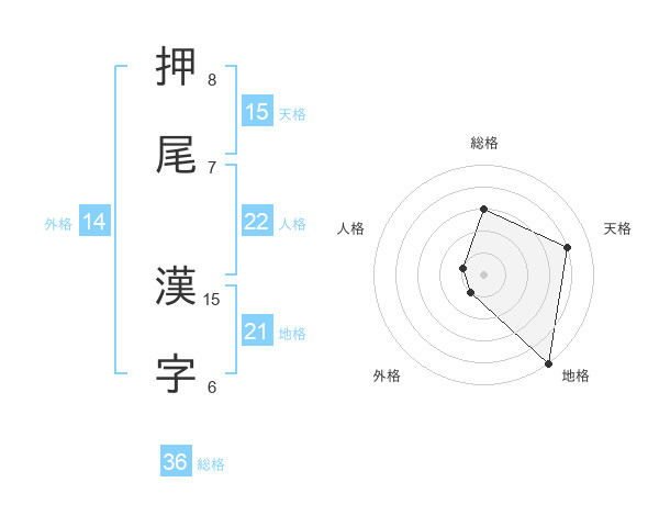 押尾 漢字さんを姓名の画数から五運を鑑定