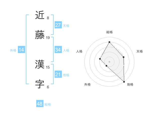近藤 漢字さんを姓名の画数から五運を鑑定