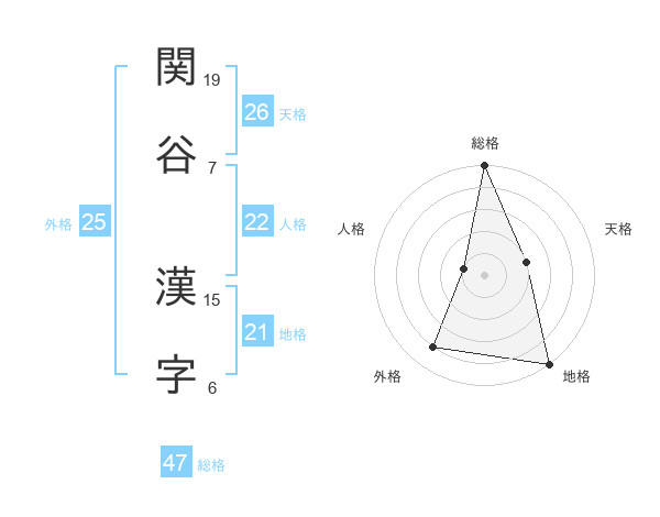関谷 漢字さんの総格は47画の5点!