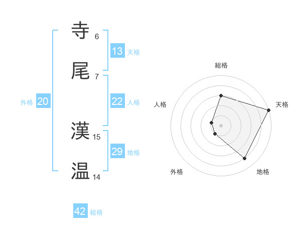寺尾 漢温さんの総格は42画の3点!