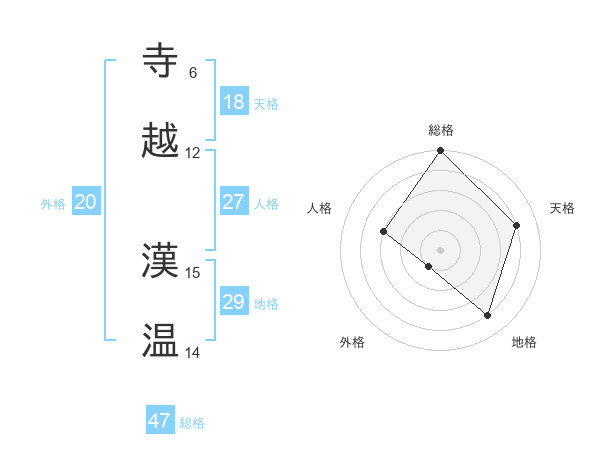 寺越 漢温さんの総格は47画の5点!