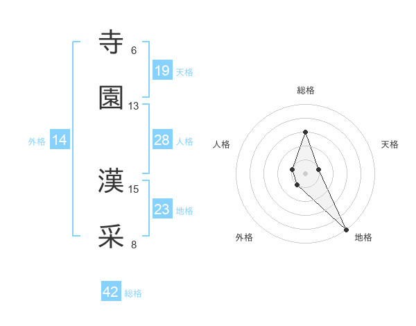 寺園 漢采さんを姓名の画数から五運を鑑定