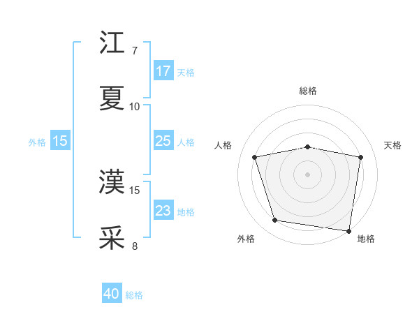 江夏 漢采さんを姓名の画数から五運を鑑定