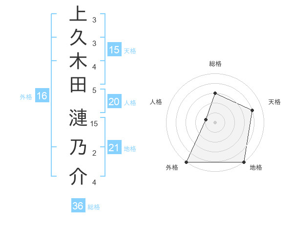 上久木田 漣乃介さんの外格は16画の5点!