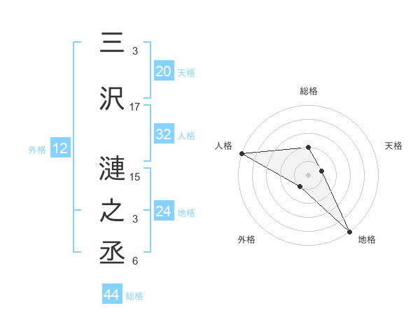 三沢 漣之丞さんを姓名の画数から五運を鑑定