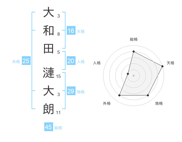 大和田 漣大朗さんを姓名の画数から五運を鑑定