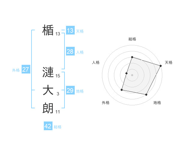 楯 漣大朗さんを姓名の画数から五運を鑑定