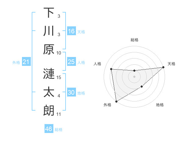 下川原 漣太朗さんの総格は46画の1点!